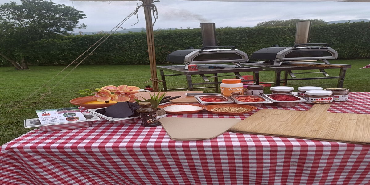Una vez montado el escenario, seguiremos con la elaboración de las pizzas y es en este punto donde empezará el show de pizzas en vivo para el público, puesto que verán cómo cada una de las masas se estira y se complementa con los ingredientes necesarios para luego, entrar en nuestros hornos que trabajan a base de leña y alcanzan los 500º centígrados, para convertirse en pocos minutos en una perfecta pizza que disfrutarán en nuestra mesa principal.